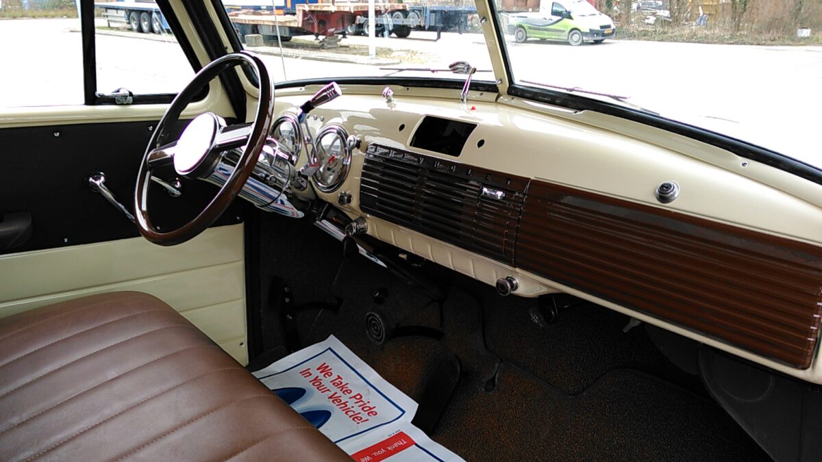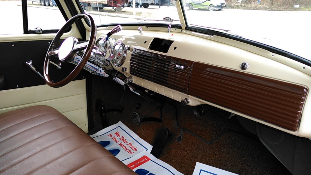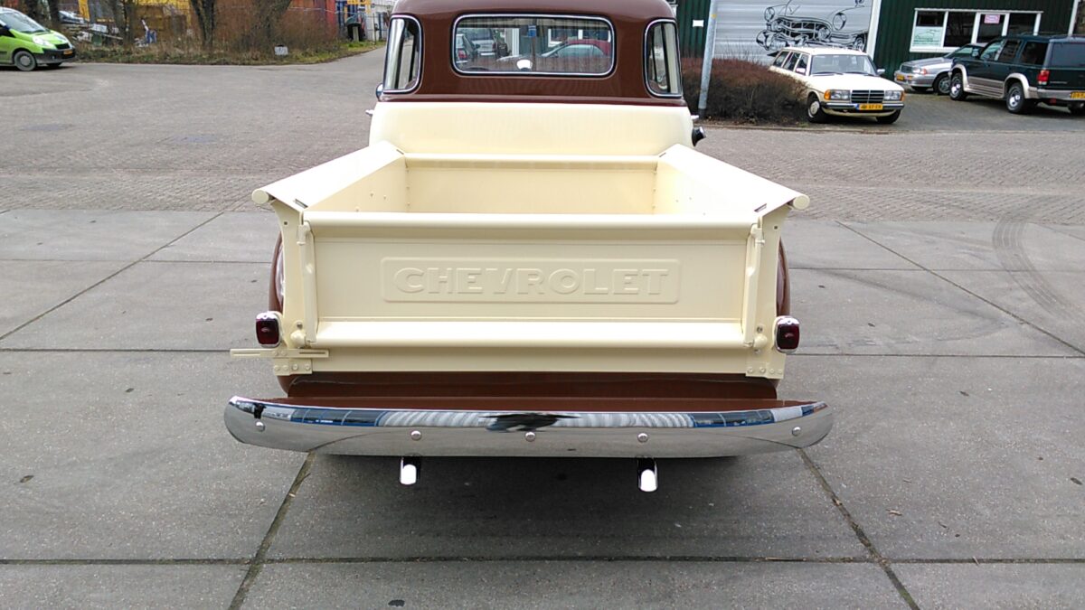 De cabine is net als het chassis een roestvrije basis. Deze wordt geheel ontdaan van lak tot kaal ijzer. De bodemplaat wordt aangepast zodat een automatische transmissie gemonteerd kan worden. Hierna wordt de cabine voorzien van een 2K epoxyprimer waarna de cabine verder strak gemaakt kan worden. Na het bodywerk gaat de cabine1947-54 Chevrolet 3100 pick-up in een tweede 2K primerlaag. Nu gaat de cabine in de kleur en 6 laklagen.Na volledige doorharding van de lak wordt de cabine op het chassis geplaats.Nu worden de nieuwe meters,bedrading,tapijt,ramen,hemel en de nieuw beklede bank geinstalleerd. Nu kan de nieuwe stuurkolom worden geinstalleerd en eventueel aangepast aan de voor u ideale zitpositie.