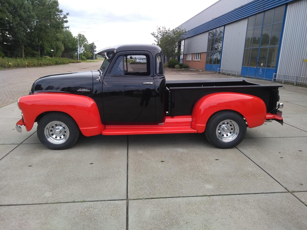 Body-off gerestaureerd. Deze GMC is licht gemodificeerd . 350 Chevy smallblock met 3speed automaat.